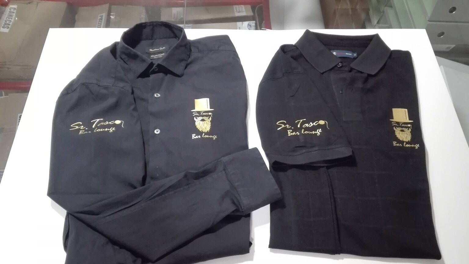Personalização em aventais, máscaras de pano e t-shirt com videoflex de recorte.