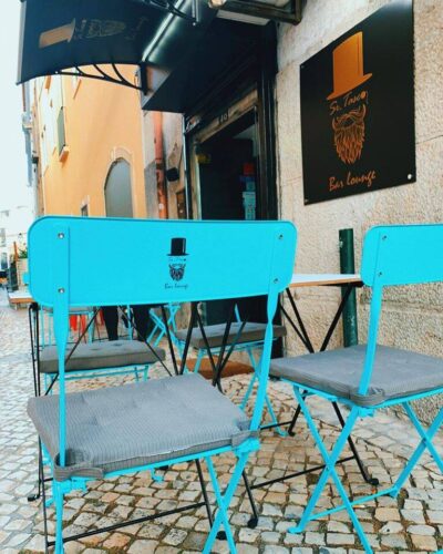 Aplicação de vinil de recorte, de vinil impresso e laminado, instalação de luz LED, PVC preto de 5mm para o exterior da fachada do bar e aplicação de vinil nas caeiras e mesas da esplanada.